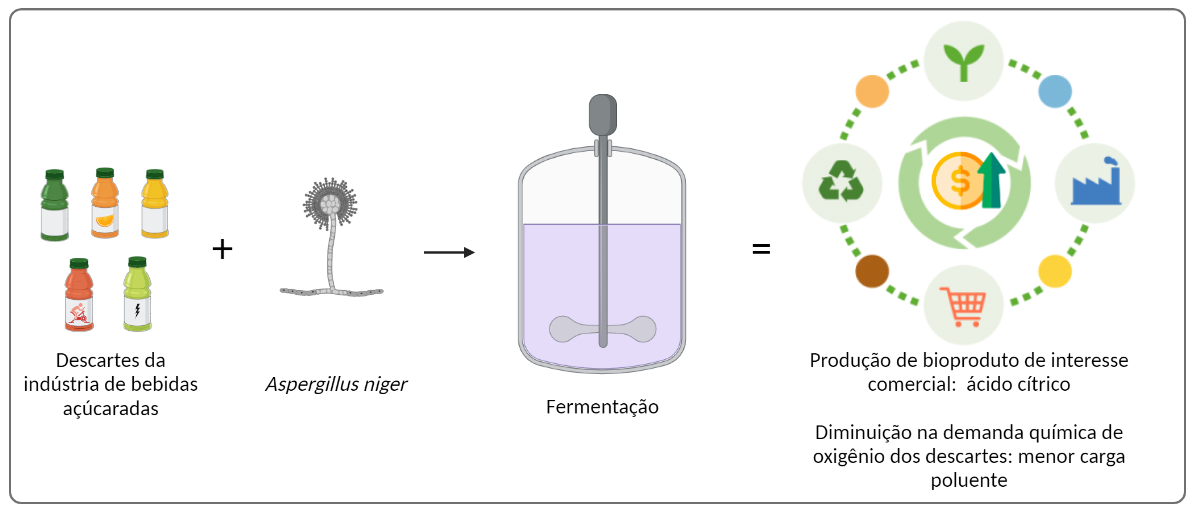 - Potencial econômico associado à transformação de um efluente (descartes da indústria de bebidas açucaradas) de baixo valor em um bioproduto (ácido cítrico) de interesse comercial;